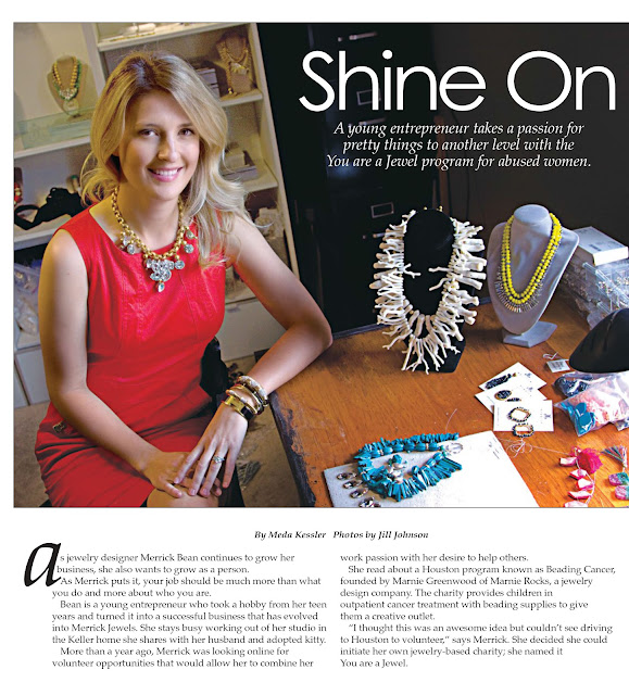 I have a session planned for April 6th at 10:30 at a Fort Worth shelter. I am still looking for 2 volunteers so if you are in the DFW and would like to volunteer please email me at: merrick@merrickjewels.com. You can also help out by donating ANY unwanted jewelry/beads/broken jewelry parts. Monetary donations are also accepted. Anything helps to make this a special event for these women in these shelters! Please contact me by email if you would like to help out.